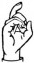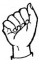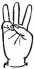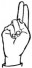 На ћирилици написано БЛАЖА БРАДИЋ састоји се из 11 слова [?]. Исписано ћириличном једноручном азбуком за глувонеме: